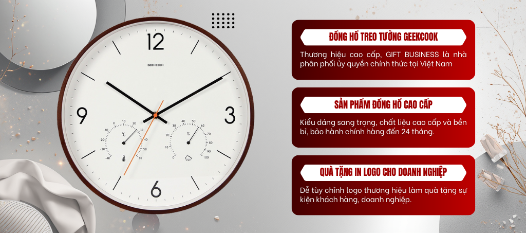 Tổng hợp các mẫu, hình ảnh đồng hồ treo tường thương hiệu Geekcook được GIFT BUSINESS phân phối ủy quyền tại Việt Nam. Hình ảnh đồng hồ treo tường gỗ Hình ảnh đồng hồ treo tường tích hợp nhiệt kế – ẩm kế Hình đồng hồ treo tường có màn hình LCD Hình ảnh...
