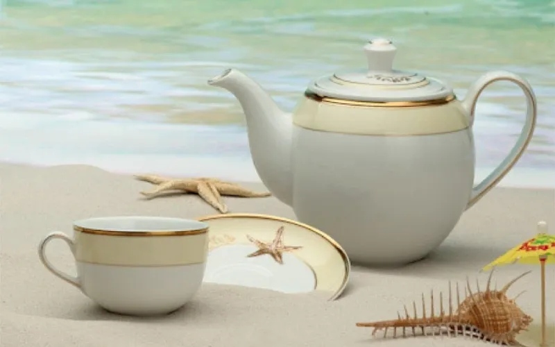 Bộ sưu tập Camellia hương biển kem gây ấn tượng bởi những họa tiết gần gũi như nghêu, sò, ốc, hến…được khắc họa tinh tế. Chúng gợi nhắc đến sự bình yên của biển cả, mang lại cảm giác tươi mát và thư thái cho người thưởng trà.
